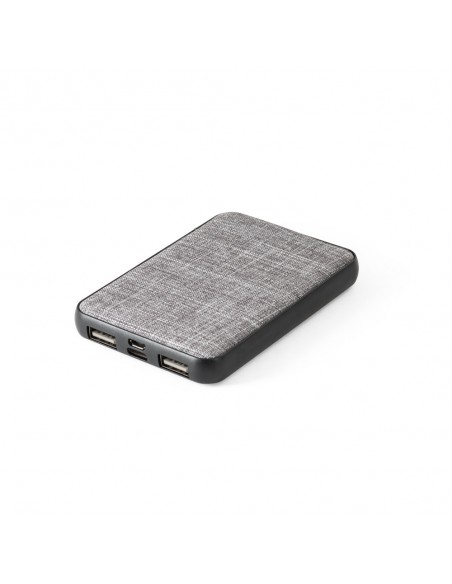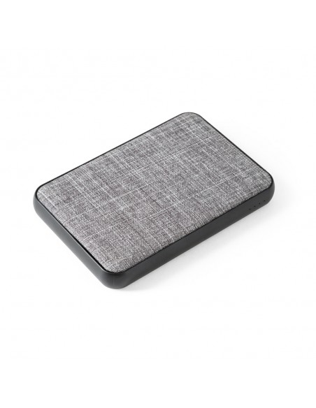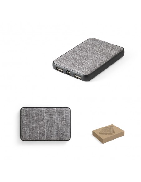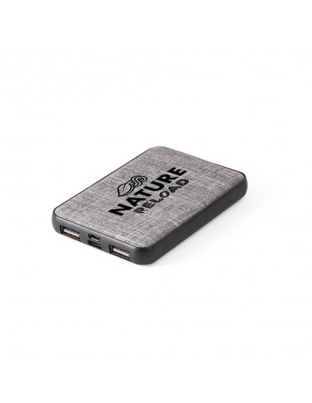 Bateria portátil 100% rPET, com bateria de lítio, capacidade de 5.000 mAh e entrada/saída de 5V/2A.