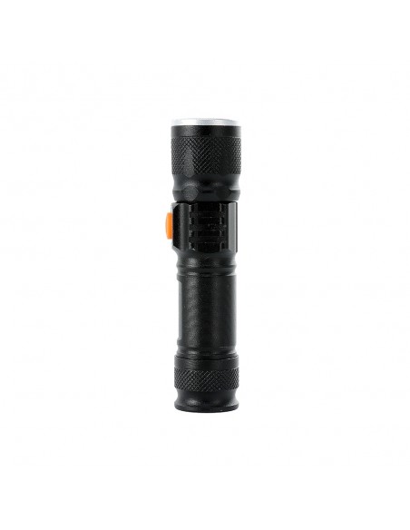 Lanterna led recarregável com zoom de regulagem e três estágios de iluminação.