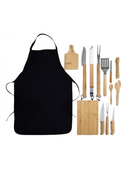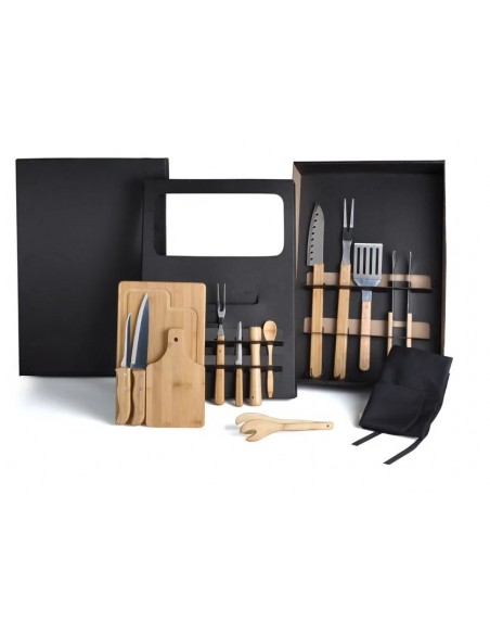 Kit para churrasco; Conta com tábua em Bambu; Faca 7" e garfo em aço Inox/Madeira.