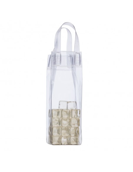 Sacola plástica para gelo com alça. Icebag serve para transportar garrafas exemplo: vinho, champagne, vodka... Basta colocar gelo e transportar seu cooler prático. OBS.: Para prolongar a vida útil do material pvc, atente-se as condições ideais de armazenamento: mantenha o material em local seco e arejado, livre da exposição ao sol e altas temperaturas. Após a utilização da icebag com gelo, certifique-se de secar completamente o material antes de guardá-lo, pois o armazenamento deste em estado úmido poderá comprometer a sua vida útil.