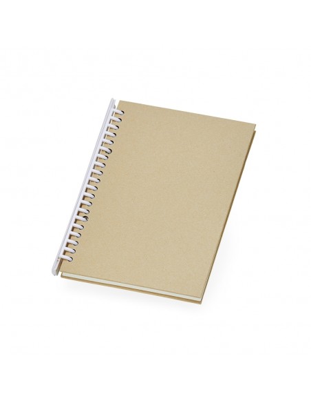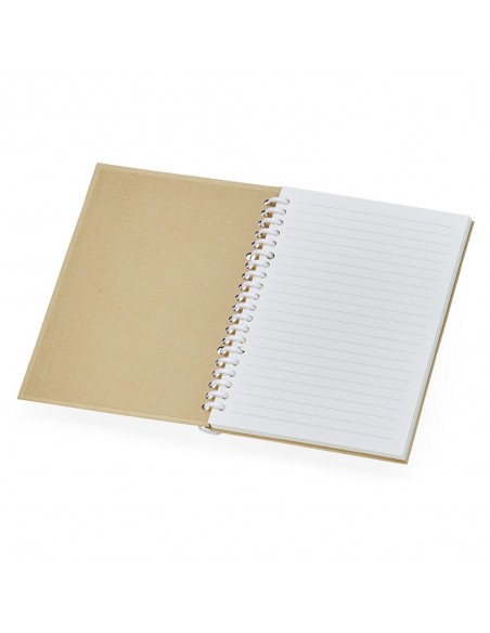 Caderno em papel craft. Acompanha caneta esferográfica.