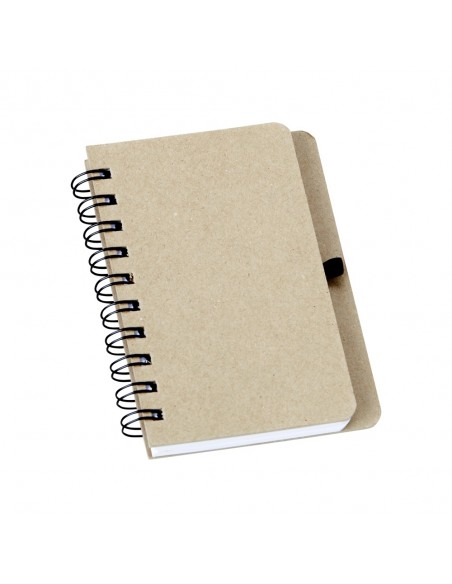 Caderneta capa dura em kraft com wire-o e porta caneta.