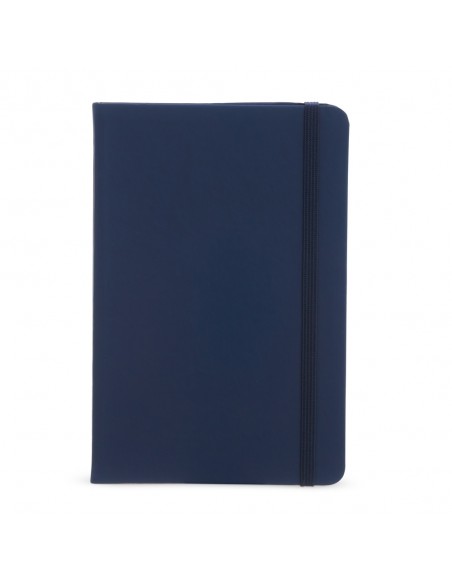 Caderneta em couro sintético emborrachado, possui marca página em cetim e elástico para lacre. Contém aproximadamente 80 folhas marfim sem pauta.