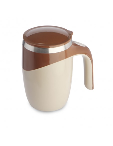 Caneca de inox com capacidade de 400ml . Vem acoplado em seu interior uma hélice de silicone para misturar.