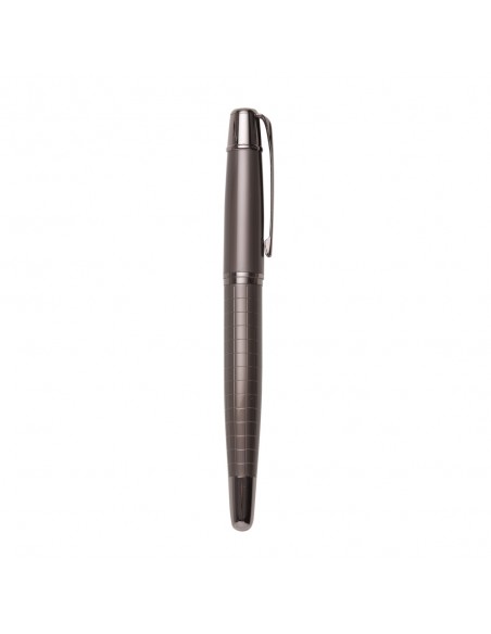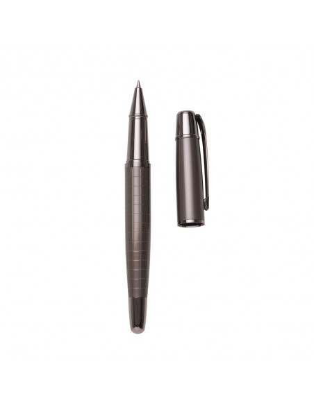 Caneta metálica Roller com detalhes dourado.