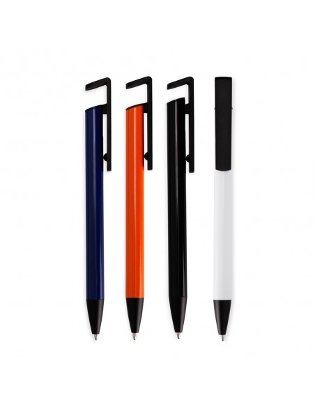 Caneta triangular semimetal de pintura fosca com detalhes em preto.