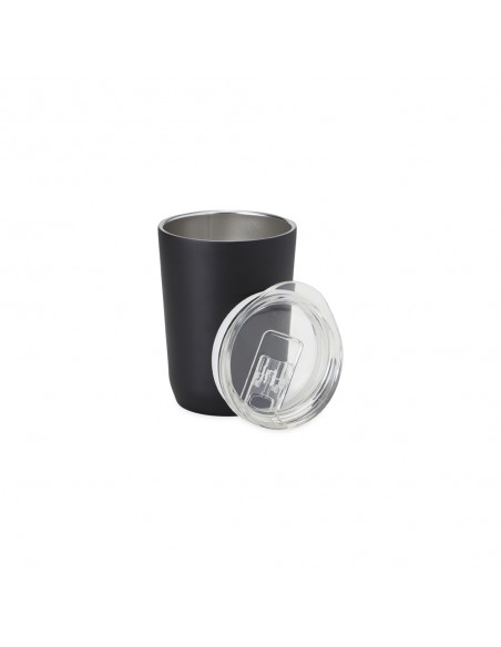 Copo térmico de inox, feito de parede dupla com capacidade para 350ml.