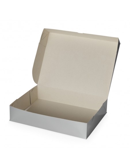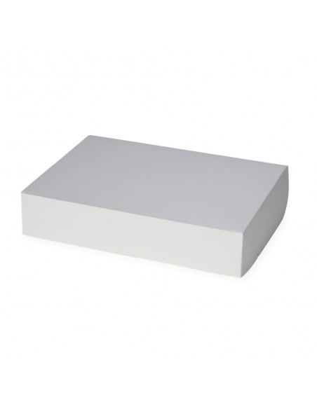 Embalagem de papelão para agenda, caixinha branca lisa com um furo na lateral.
