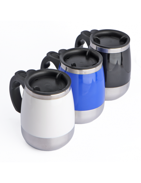 Caneca plástica mixer em aço inox na parte interna com capacidade de até 400ml.
