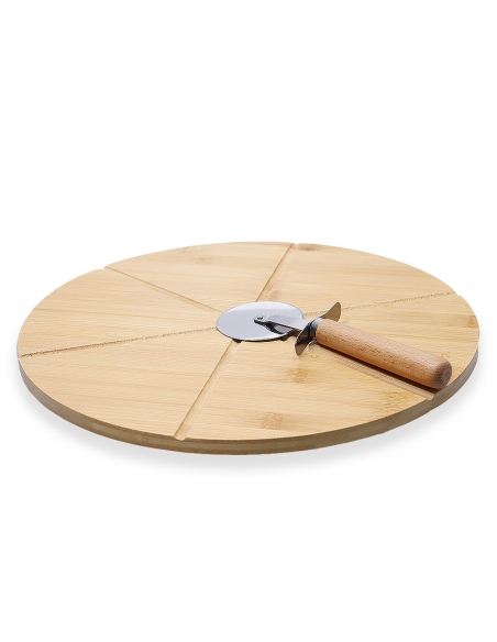 Kit pizzas contendo 2 peças: Tábua para pizza; Cortador. Obs.:Os componentes de madeira e bambu poderão apresentar tonalidades diferente.