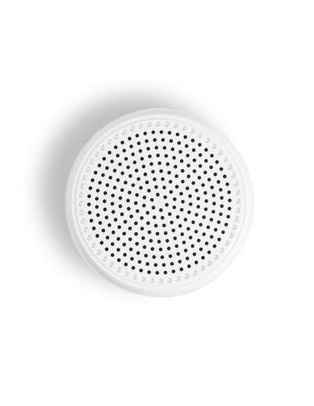 Caixa de som portátil em fibra de palha de trigo e ABS com microfone.