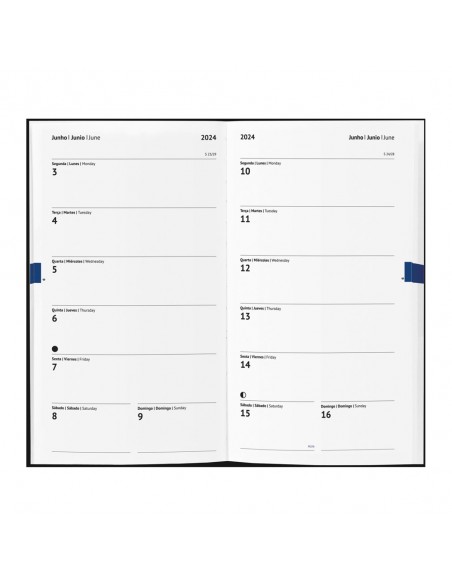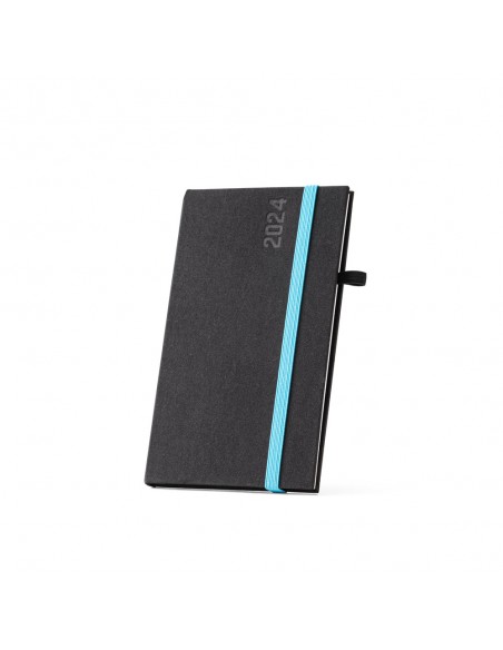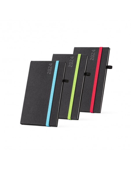 Agenda diária 2024 de couro sintético com suporte para caneta.