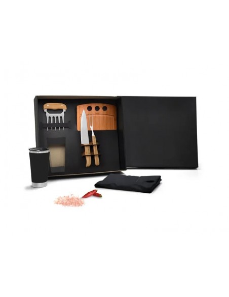 Kit para churrasco; Conta com tábua em Bambu; Faca 7" e garfo em aço Inox/Madeira.
