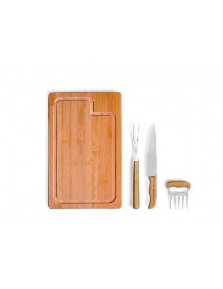 Kit para churrasco; Conta com tábua em Bambu; Faca 7" e garfo em aço Inox/Madeira.