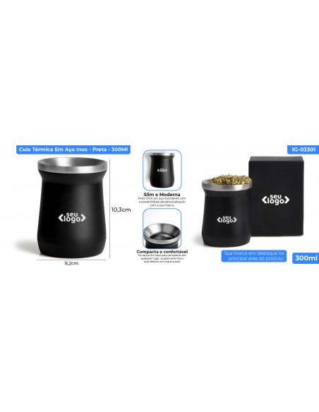 Cuia térmica em Aço Inox. Confeccionada com dupla parede de inox, isolada a vácuo. Ideal para chimarrão ou tereré.
