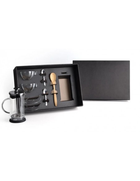 Kit caipirinha com tábua em Bambu, faca para frutas 4" em Inox/Bambu, pilão, colher de 18cm e base para a tábua em Bambu e coqueteleira de 350ml em Aço Inox. Acomodados em uma linda caixa para presente.