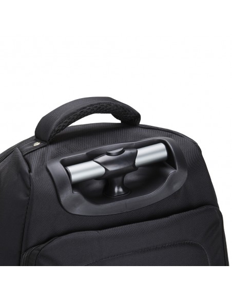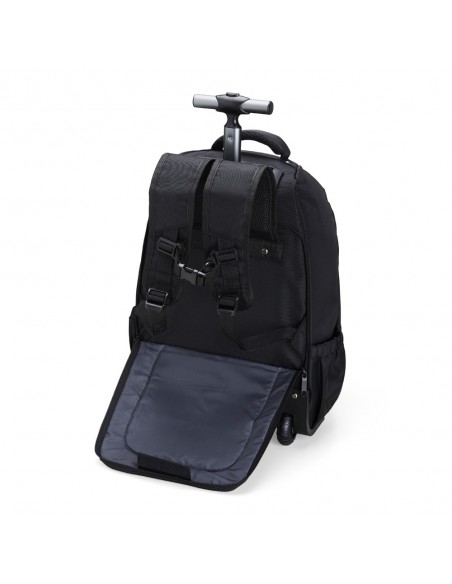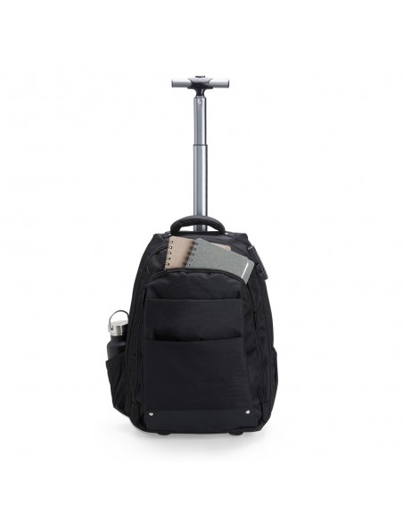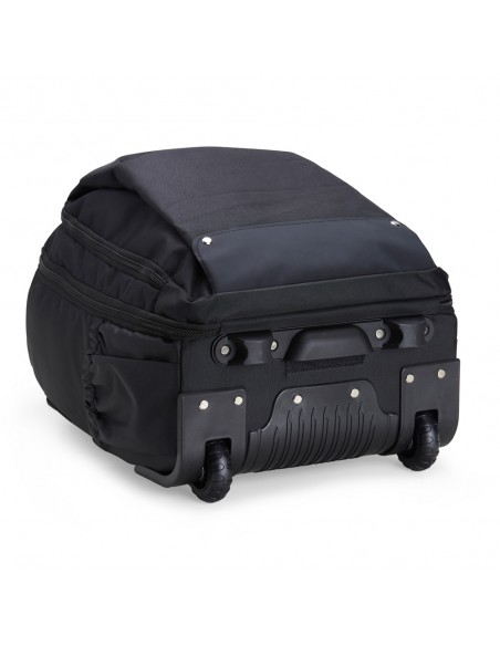 Mochila 27 litros com rodinhas e cadeado TSA. Possui padrão para bagagem de mão, conforme especificações ANAC (Agência Nacional de Aviação Civil) Confeccionada em nylon, contém alça revestida com espuma para um maior conforto, puxador retrátil com regulagem e botão acionador, alças para as costas escondidas no compartimento traseiro com zíper.