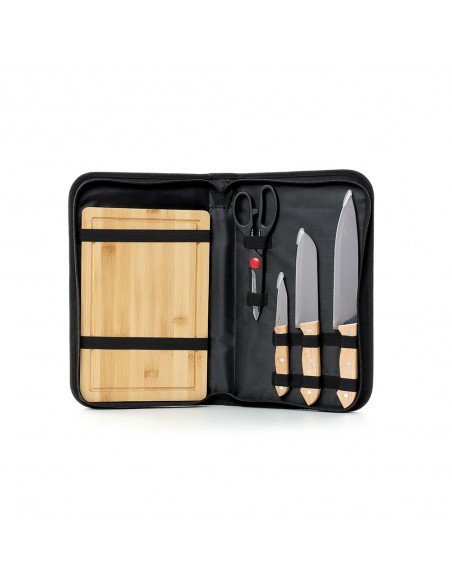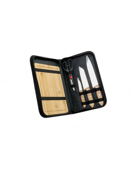 Kit para churrasco; Conta com tábua em Bambu; Faca 7" e garfo em aço Inox/Madeira.