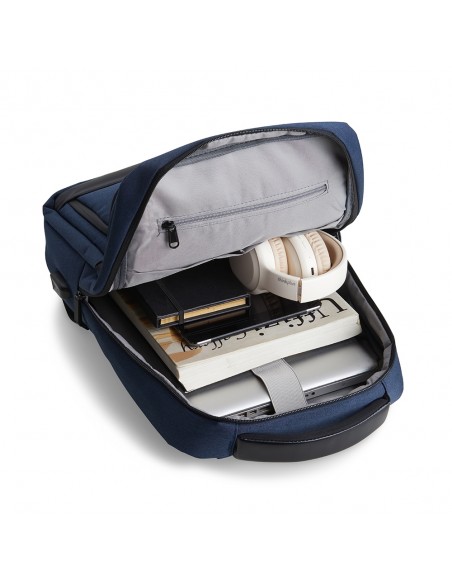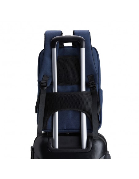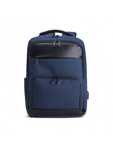 Mochila de Poliéster 29 litros com detalhes em couro sintético. A mochila possui 4 compartimentos, sendo o principal com bolso para notebook 15,6 polegadas. Contém divisórias internas para acessórios, bolso lateral, alça para engate em malas de viagem e suporte externo USB.