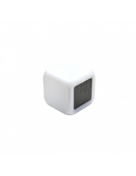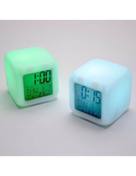 Relógio digital LED com despertador, feito em material plástico. Com um display LCD multifuncional que exibe horas, dias da semana, data e temperatura ambiente, o relógio possui a função de alarme com 9 opções de toques, incluindo um prático modo soneca. O LED ativado por meio de botões ou via touch, proporciona um momento relaxante, exibindo cores suaves de forma alternada, com uma durabilidade aproximada de 15 segundos. Alimentado por 3 pilhas AAA (não inclusas).