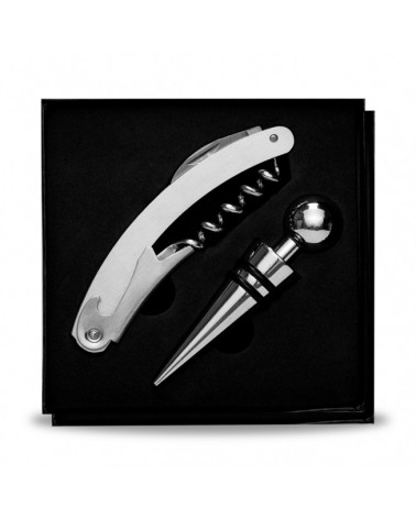 Kit vinho 2 peças com estojo em papelão e forração interna em espuma.