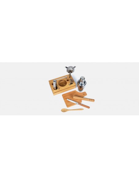Kit caipirinha 3 peças com tábua de madeira, copo e socador.