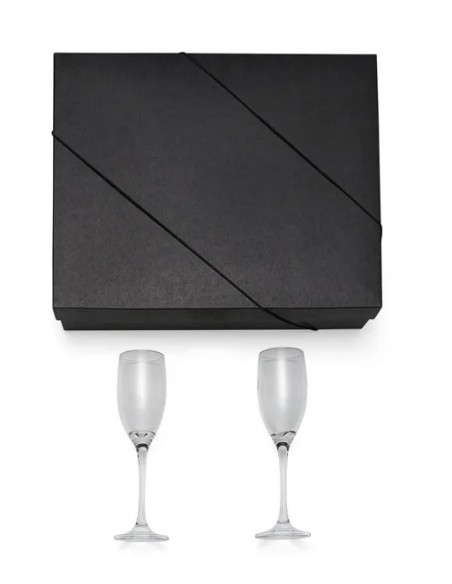 Jogo com 2 taças de vidro para Champagne, com espaço para a garrafa baby.