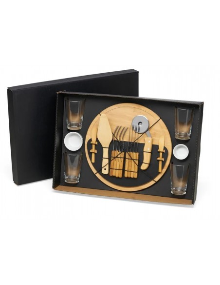 Kit Pizza Em Bambu Com Copos 19 peças.