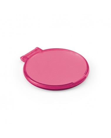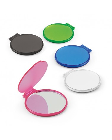 Espelho para maquiagem redondo de plástico com estojo dobrável.