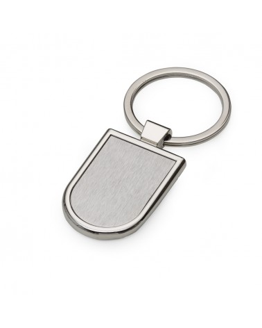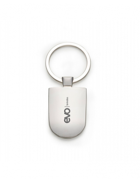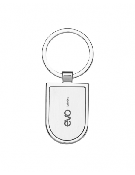 Chaveiro metálico em Formato retangular com bordas arredondadas.