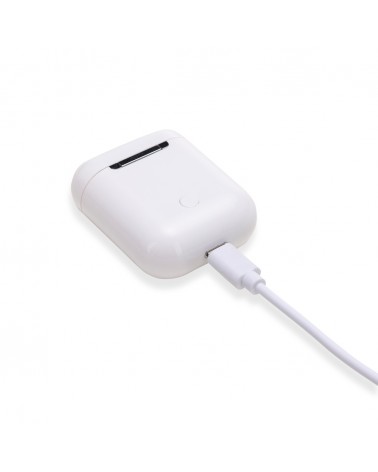 Fone de ouvido bluetooth com case carregador de fechamento magnético.