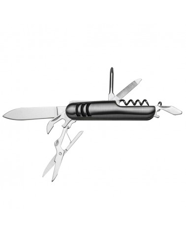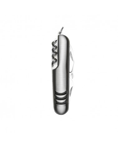 Canivete metálico com 7 funções. Acompanha bainha de nylon.