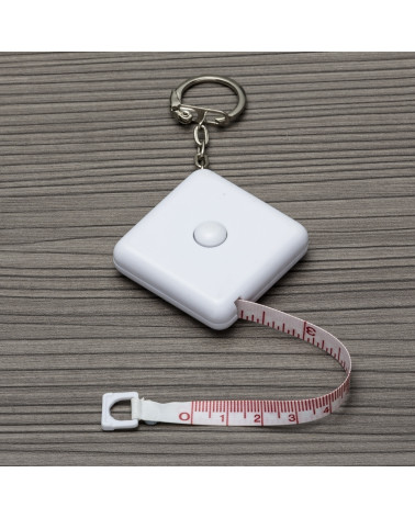 Fita métrica 1 metro com estojo plástico e argola para chaveiro.
