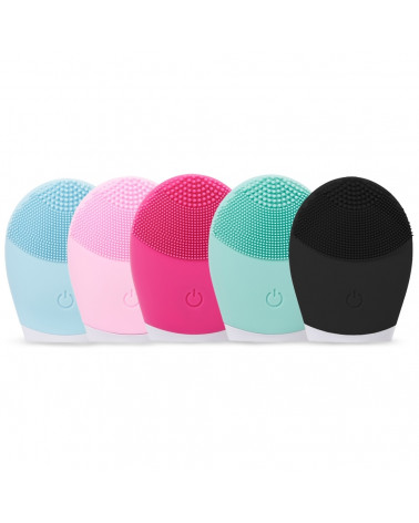 Massageador facial produzido em silicone à prova d’água, a escova possui três tamanhos de cerdas que limpam e massageiam a face.