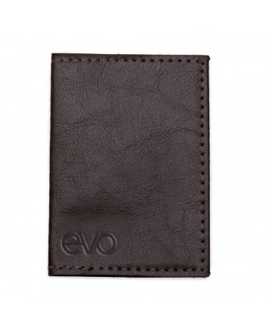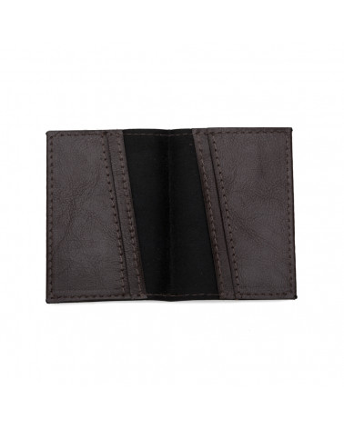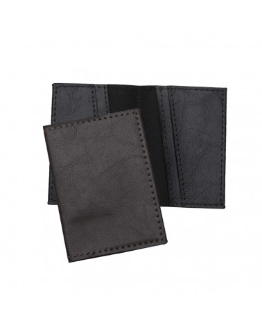 Porta cartão em couro sintético com quatro divisórias em diagonal.