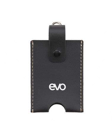 Estojo porta álcool gel de couro sintético com chaveiro e mosquetão, capacidade para frasco de 60ml. Contém alça com botão de pressão para fecho.