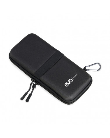 Estojo de proteção para eletrônicos, feito em nylon resistente à água. Contém bolsos de malha internamente e elásticos para fixação na área interna e externa. Acompanha mosquetão.