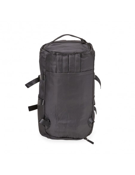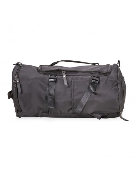 Compartimento principal com dois bolsos, sendo um deles com zíper exclusivo para itens molhados. Com bolsos laterais e duas alças de mãos, a bolsa contém alças de compensação, alça transversal removível e alças para as costas ocultas no compartimento inferior, podendo ser transportada como mochila.