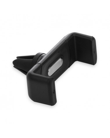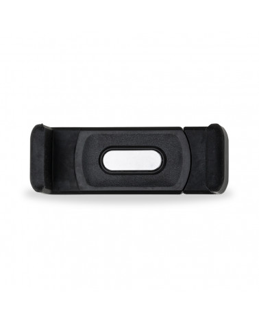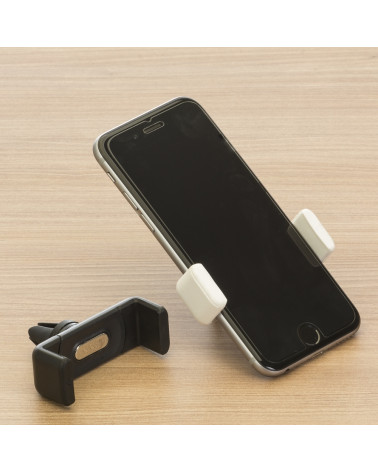 Suporte veicular para celulares com placa metálica para gravação, hastes plásticas para ajuste e garra ,plástica para fixação na grade do ar-condicionado.